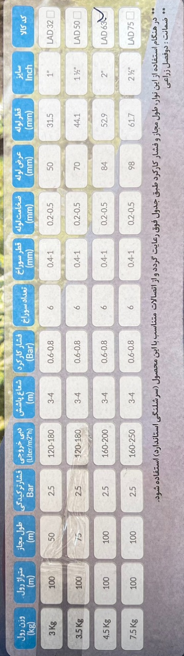 سایز 2 اینچ کلاف 100 متری